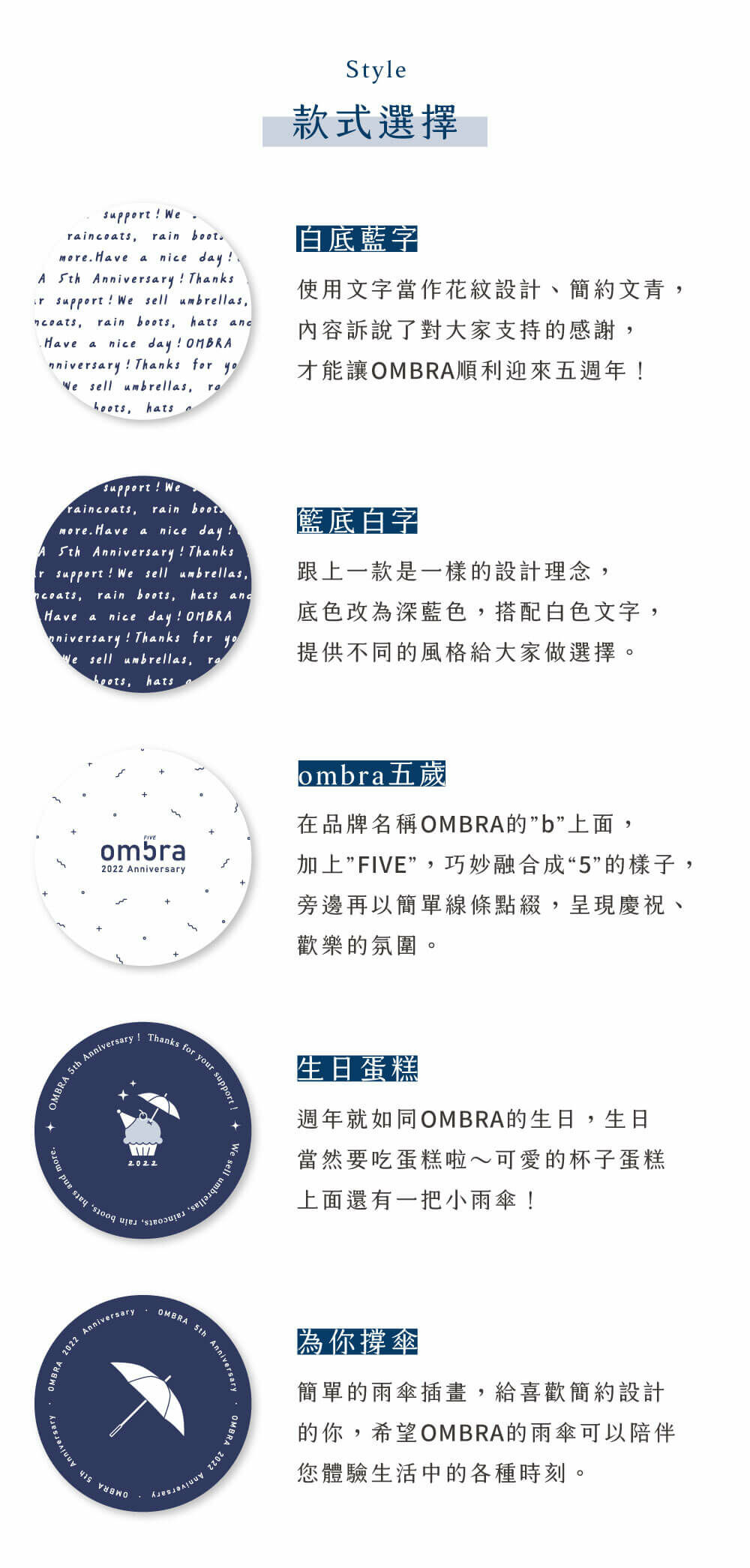 白底藍字 / 藍底白字 / ombra 五歲 / 生日蛋糕 / 為你撐傘
