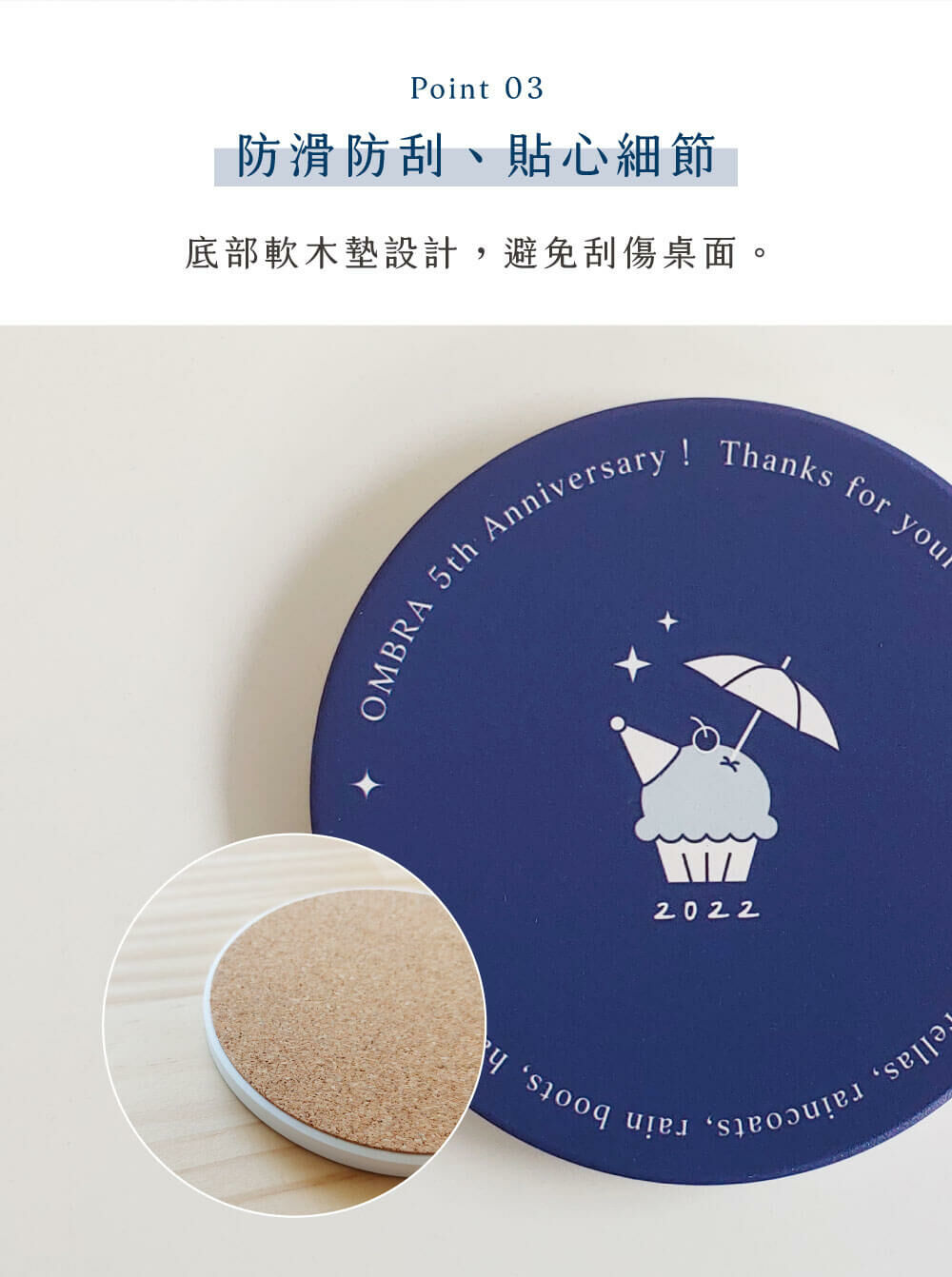 底部軟木墊設計,避免刮傷桌面。