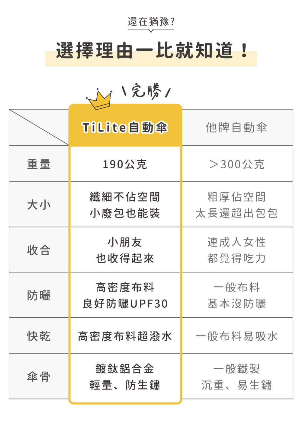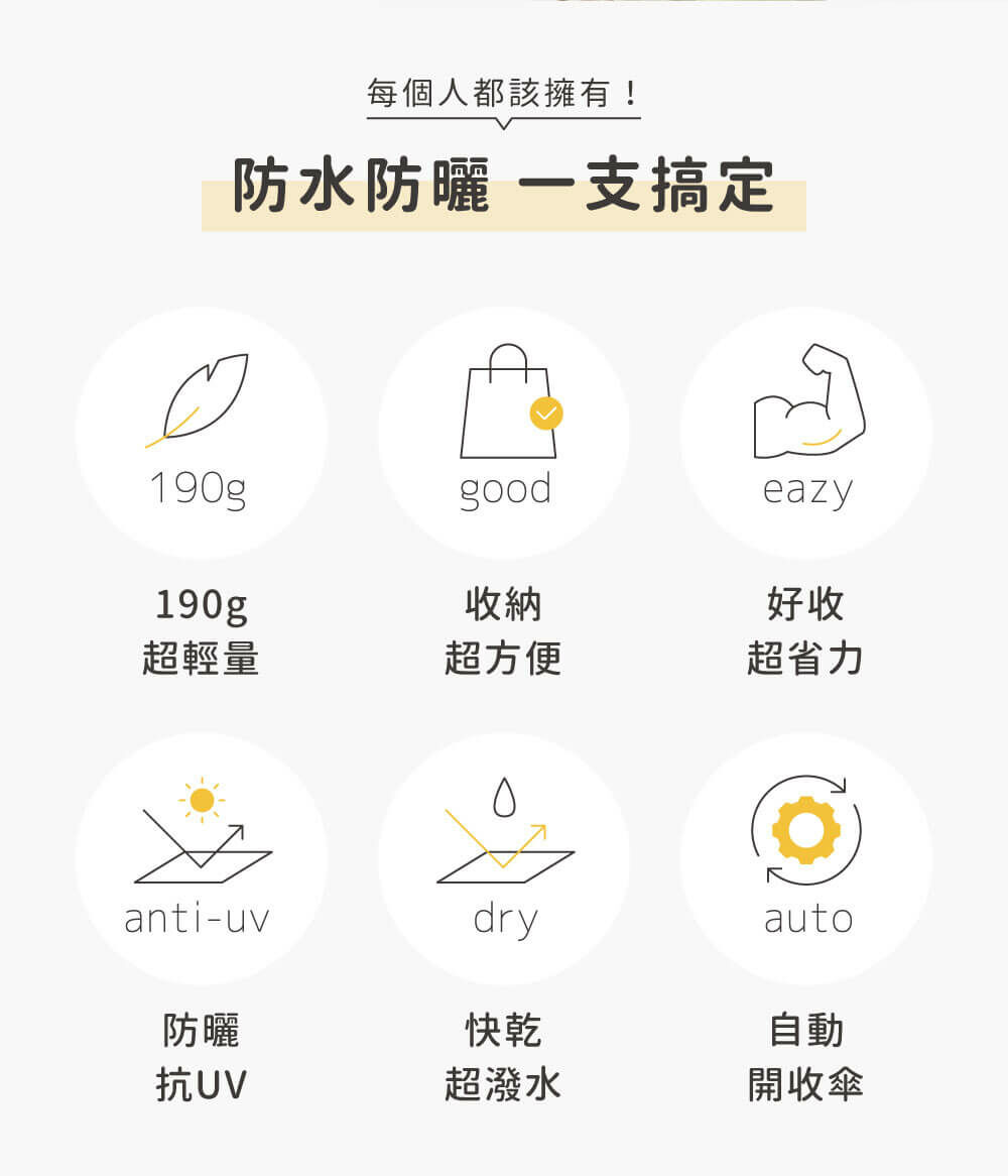 雨傘是自動的,而且重量僅有190g!