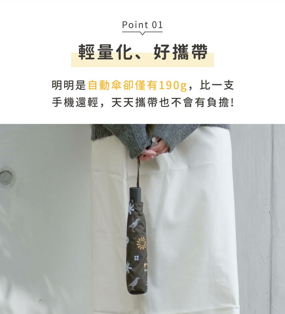➤超輕巧的自動傘,重量僅有190g。