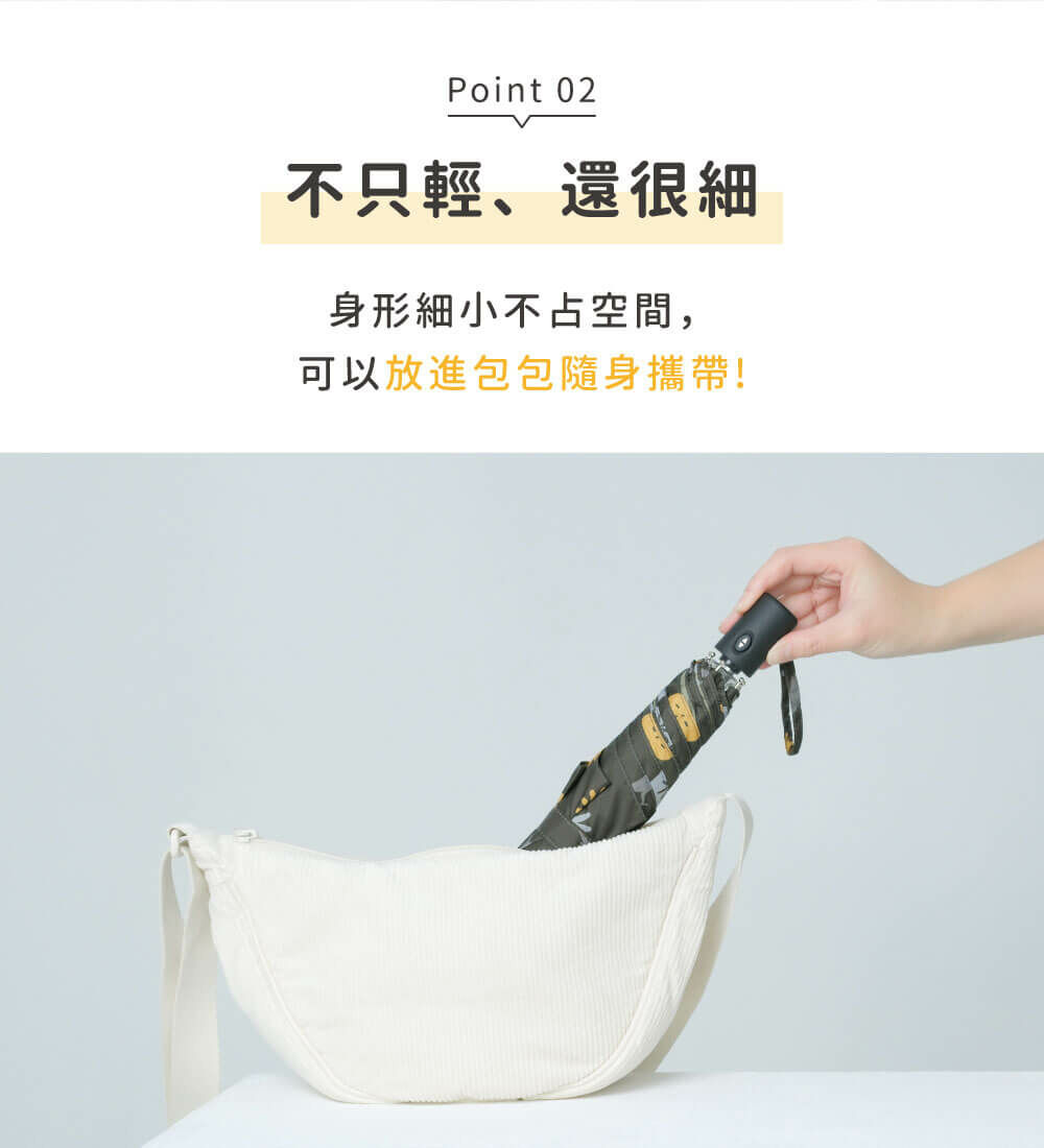 ➤霧面質感傘柄,自動傘體積超輕巧