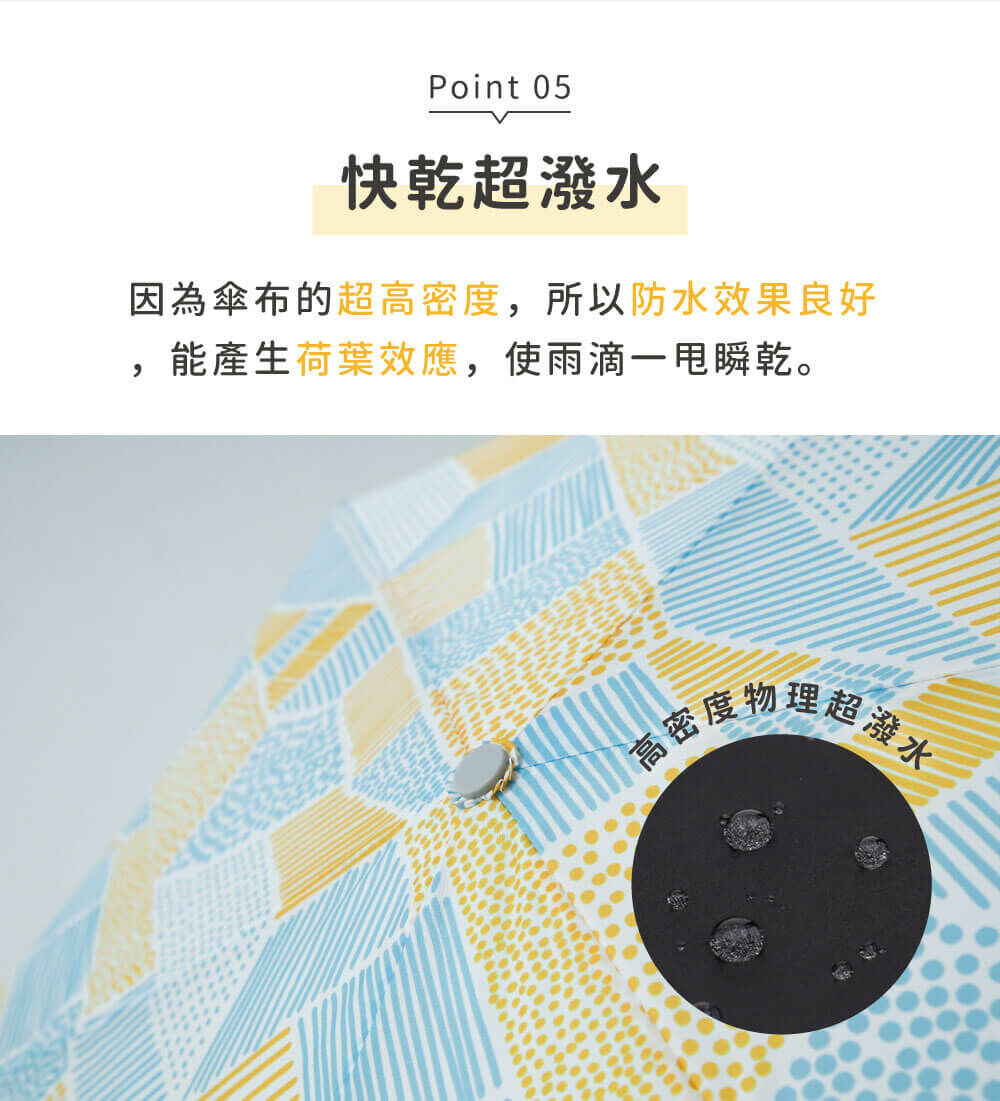 還能讓雨滴一甩即乾,輕巧快乾。