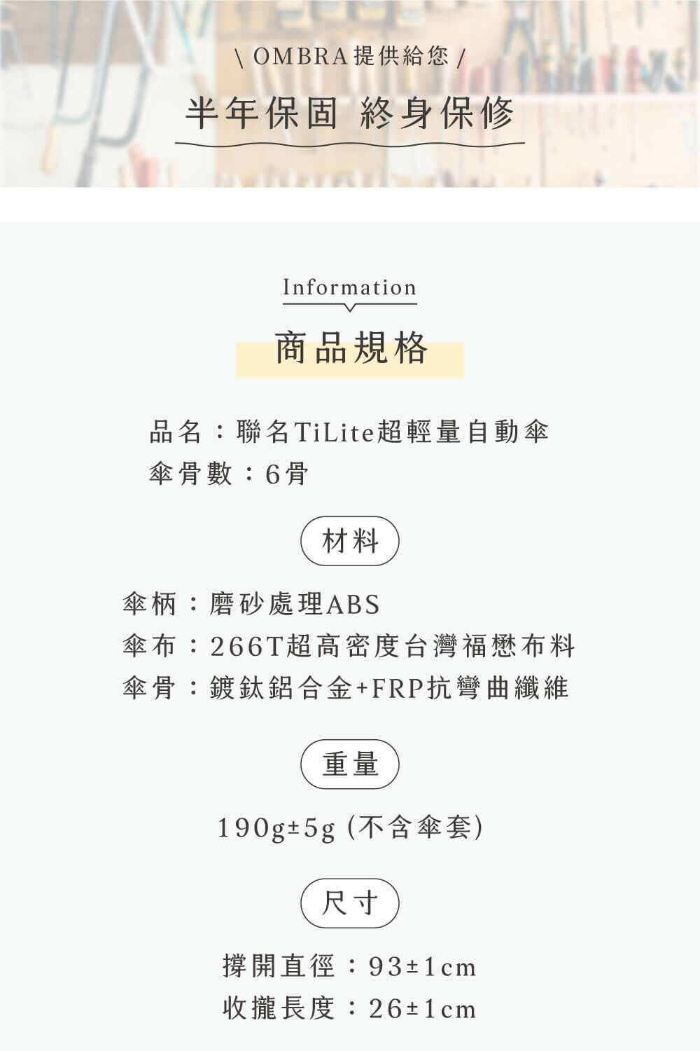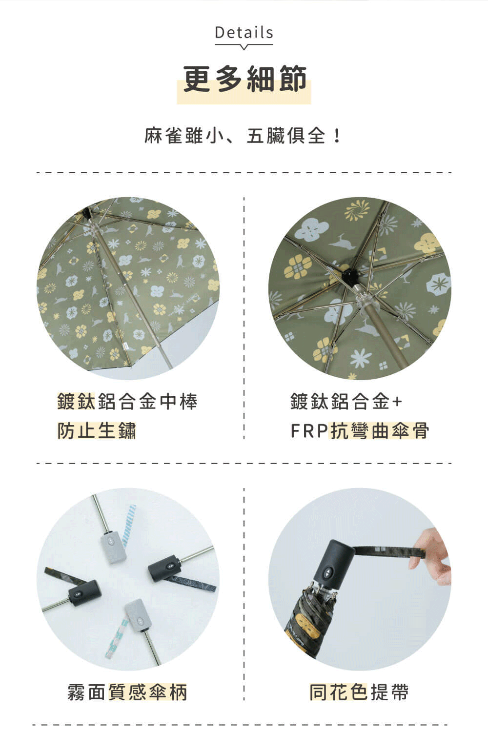 傘骨:鍍鈦鋁合金+FRP抗彎曲纖維