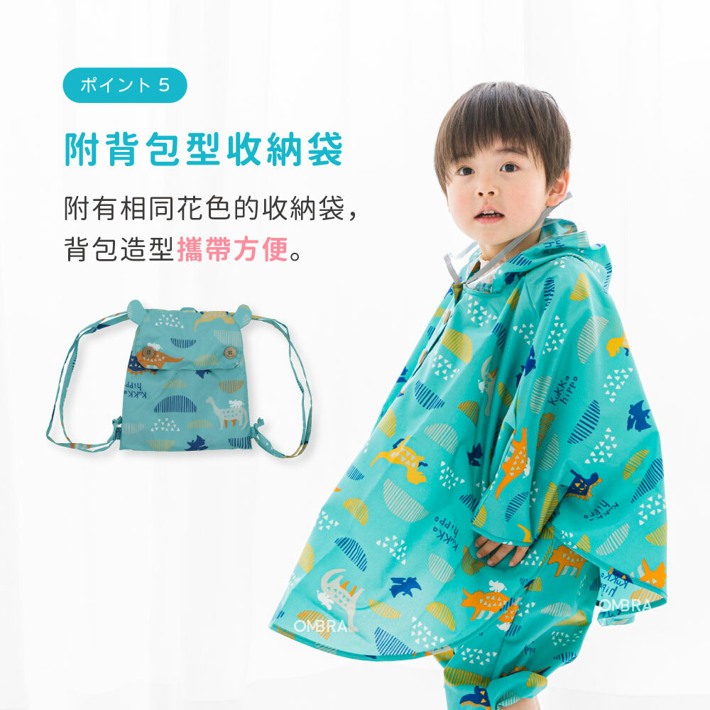【kukka hippo / 兒童斗篷式雨衣】附背包型收納袋