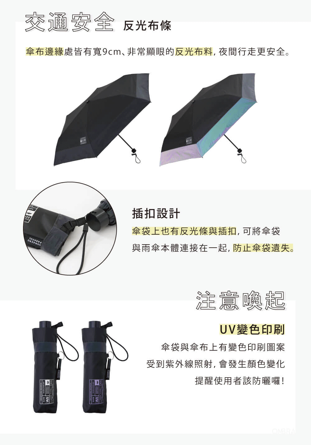 ➤傘緣反光條、夜間行走更安心!