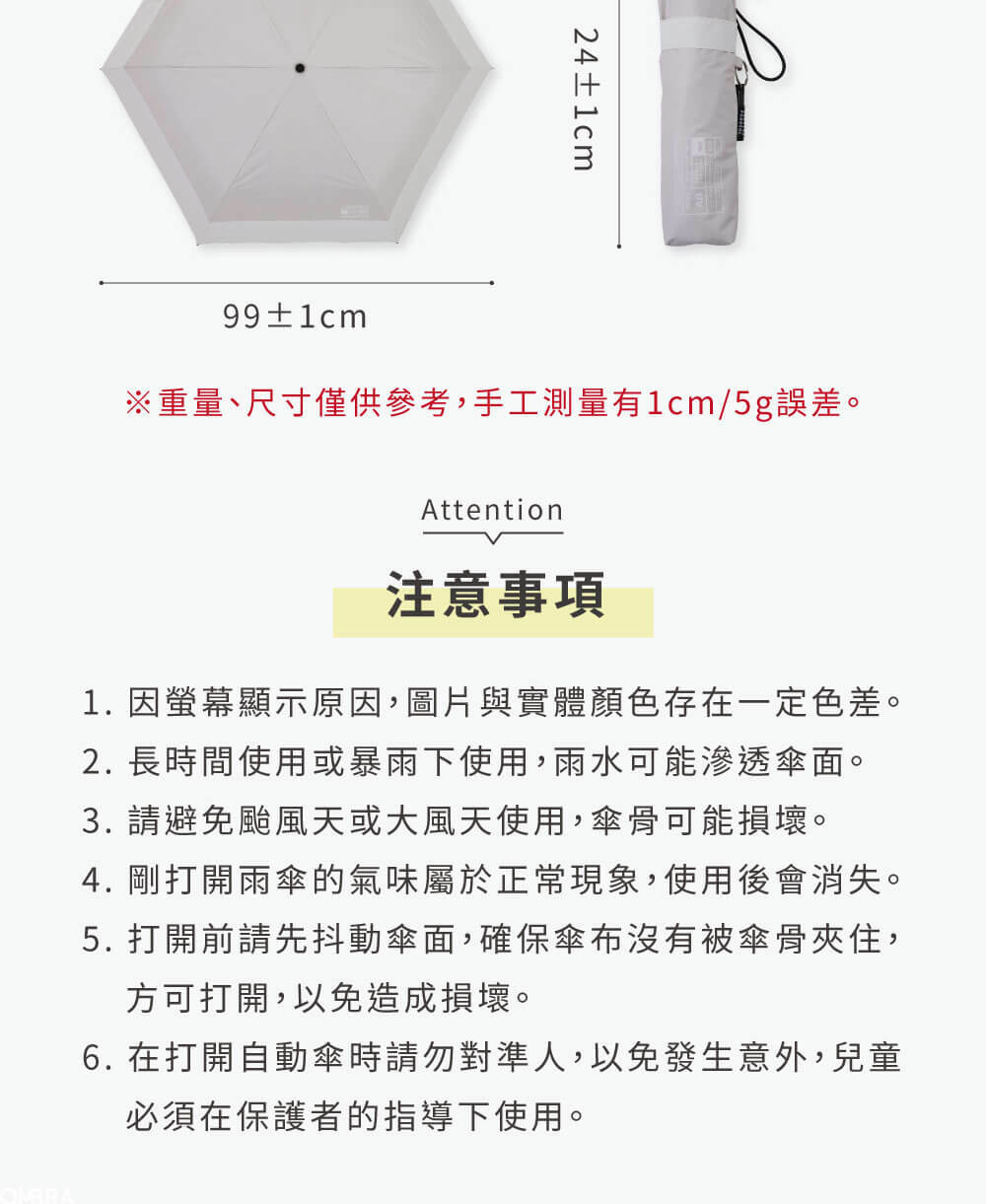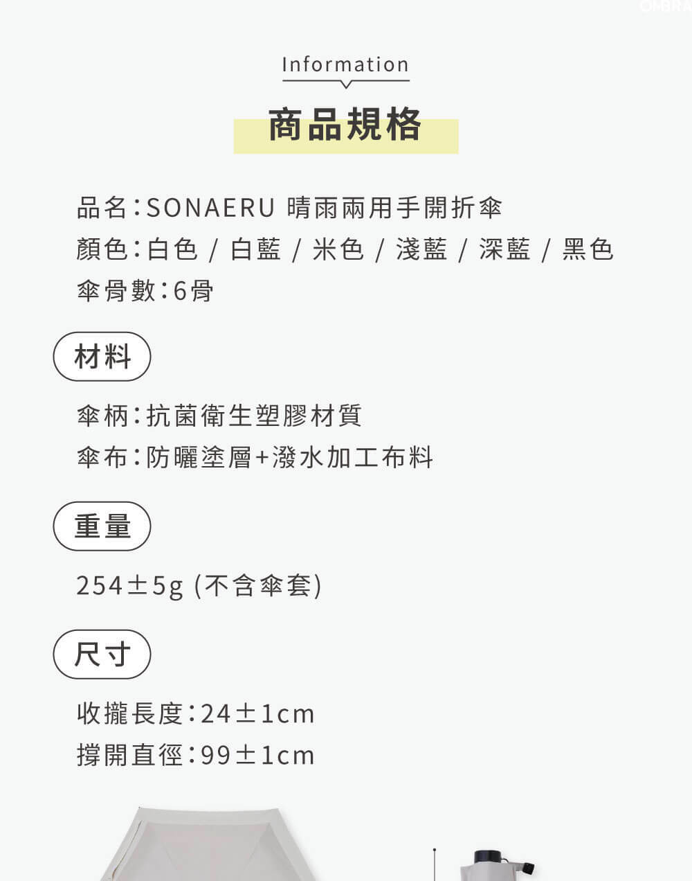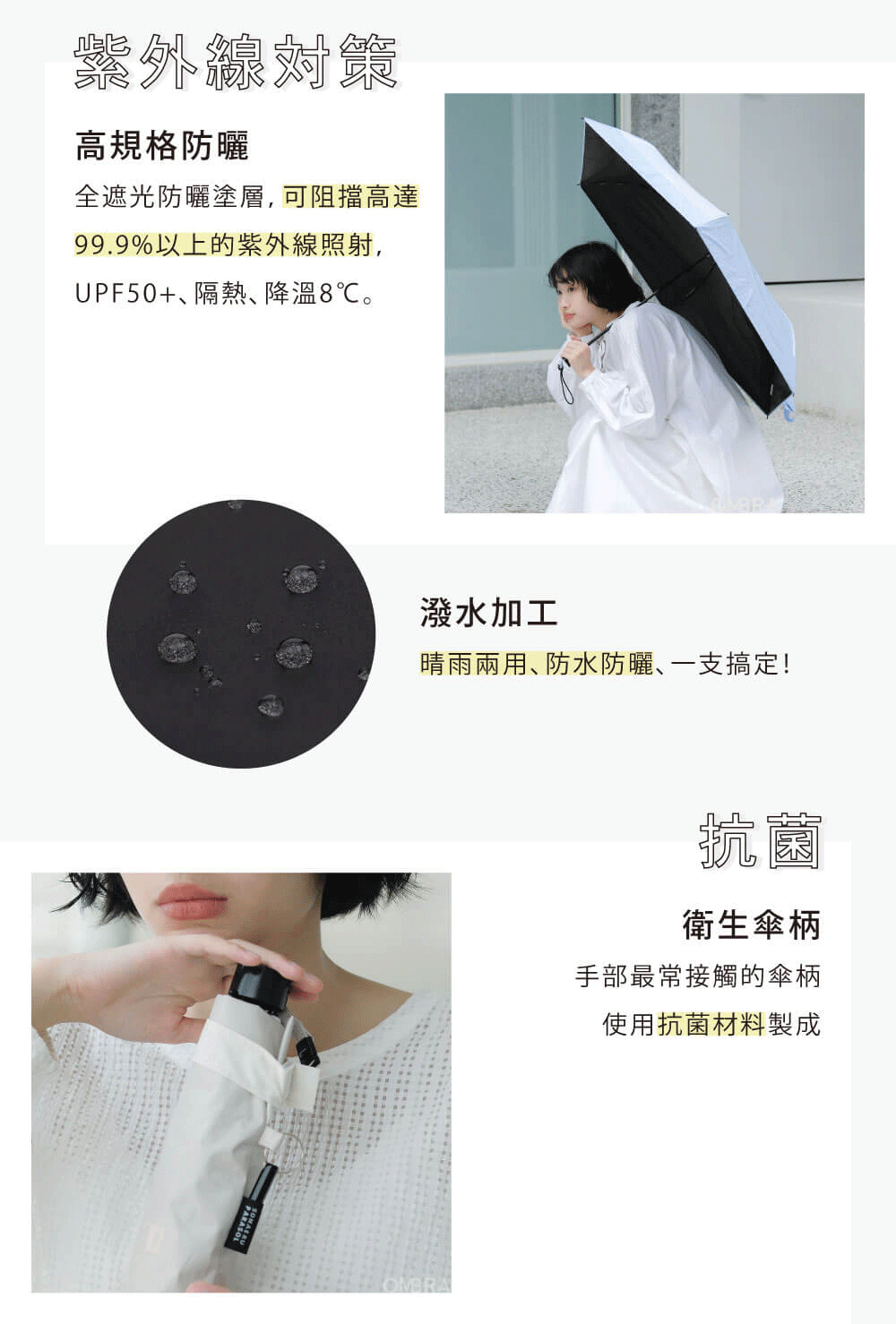 ➤傘布潑水加工,晴雨兩用、一支搞定!