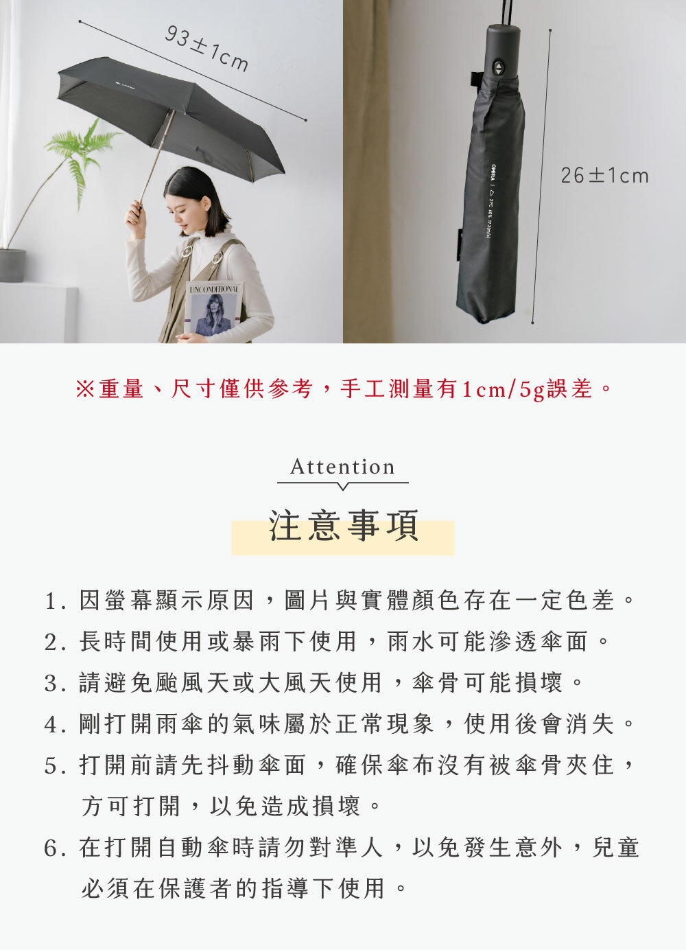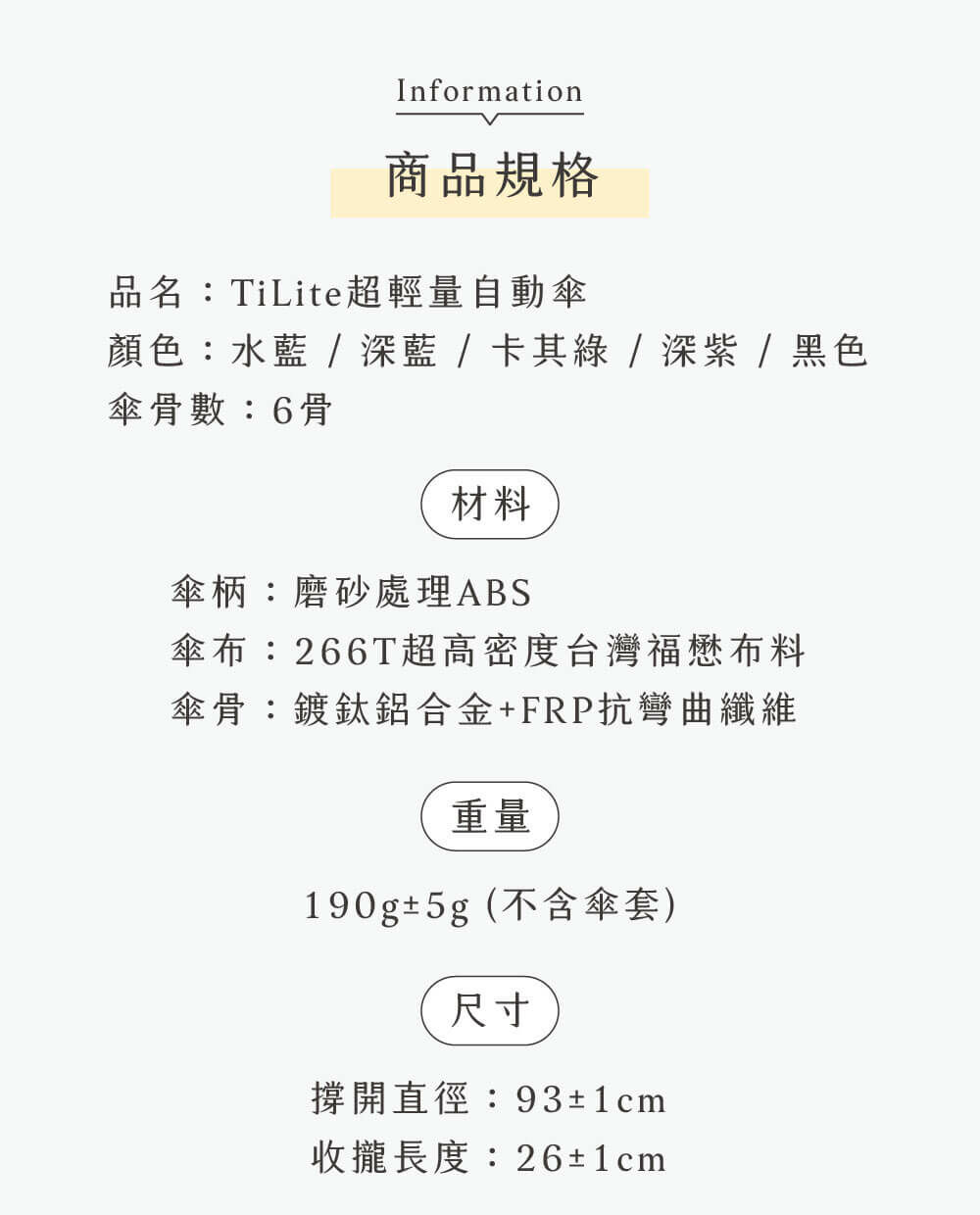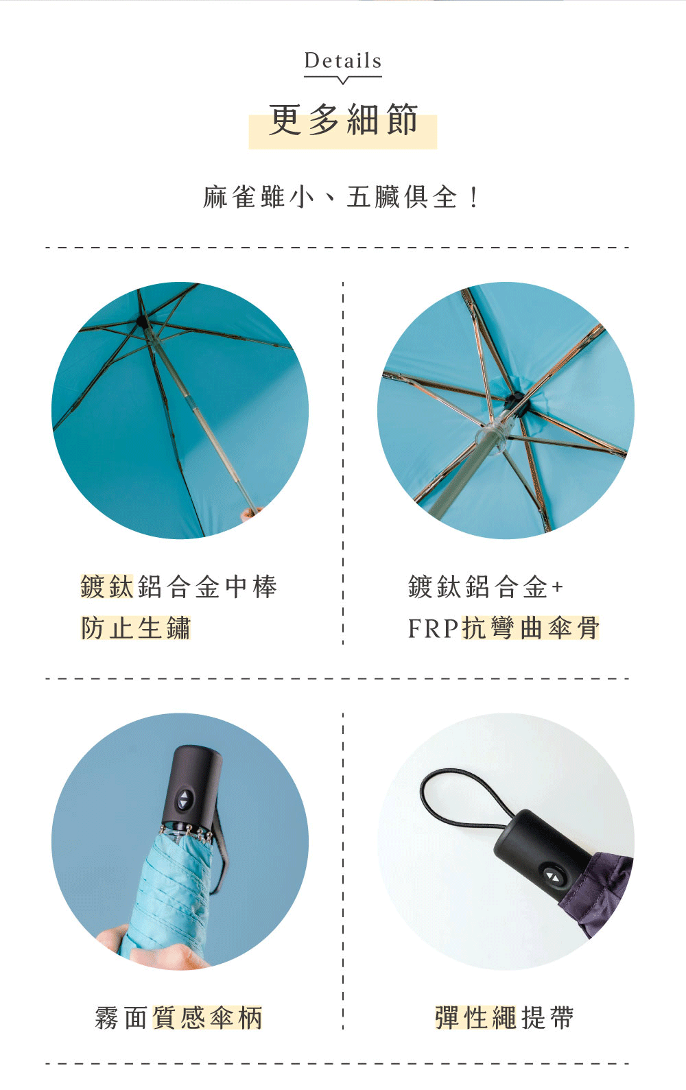 傘骨:鍍鈦鋁合金+FRP抗彎曲纖維